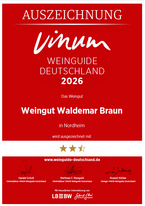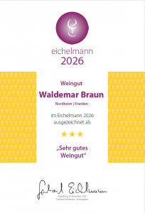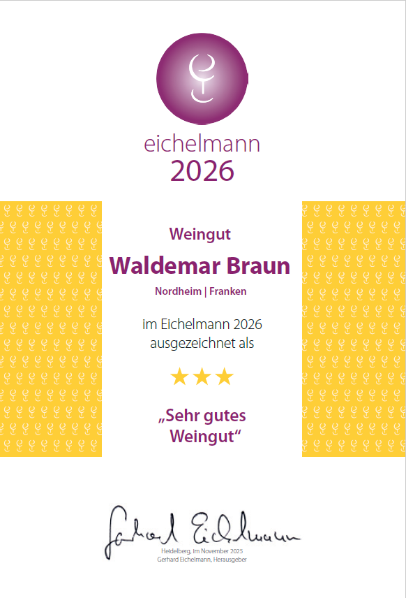 Familie Braun aus Nordheim schafft es erneut, mit ihrem Sortiment zu beeindrucken. Die Weine zeichnen sich durch ihre klare handwerkliche Qualität aus, sind unkompliziert und passen perfekt zu einem klassischen fränkischen Vesper. Ein herausragendes Beispiel dafür ist der Graue Burgunder vom Nordheimer Vögelein, der auf angenehme Weise unaufdringlich bleibt. Feine rotbeerige Aromen verbinden sich mit einer dezenten Säure zu einem äußerst harmonischen Wein. Ebenso überzeugt der Riesling von derselben Lage, der durch seine lebendige Säure und eine ausgefeilte Aromatik von Pfirsich und leichter Exotik eine klassische Linie verfolgt und viel Trinkfreude bereitet. Besonders angetan hat uns die Scheurebe vom Escherndorfer Lump, eine ruhigere und gelassenere Interpretation der Rebsorte mit einem delikaten Säurespiel und einer spannenden Aromenstruktur, zurückhaltend und elegant. Solch Weine sind das Markenzeichen des Weinguts. Wir freuen uns schon auf den nächsten Jahrgang!